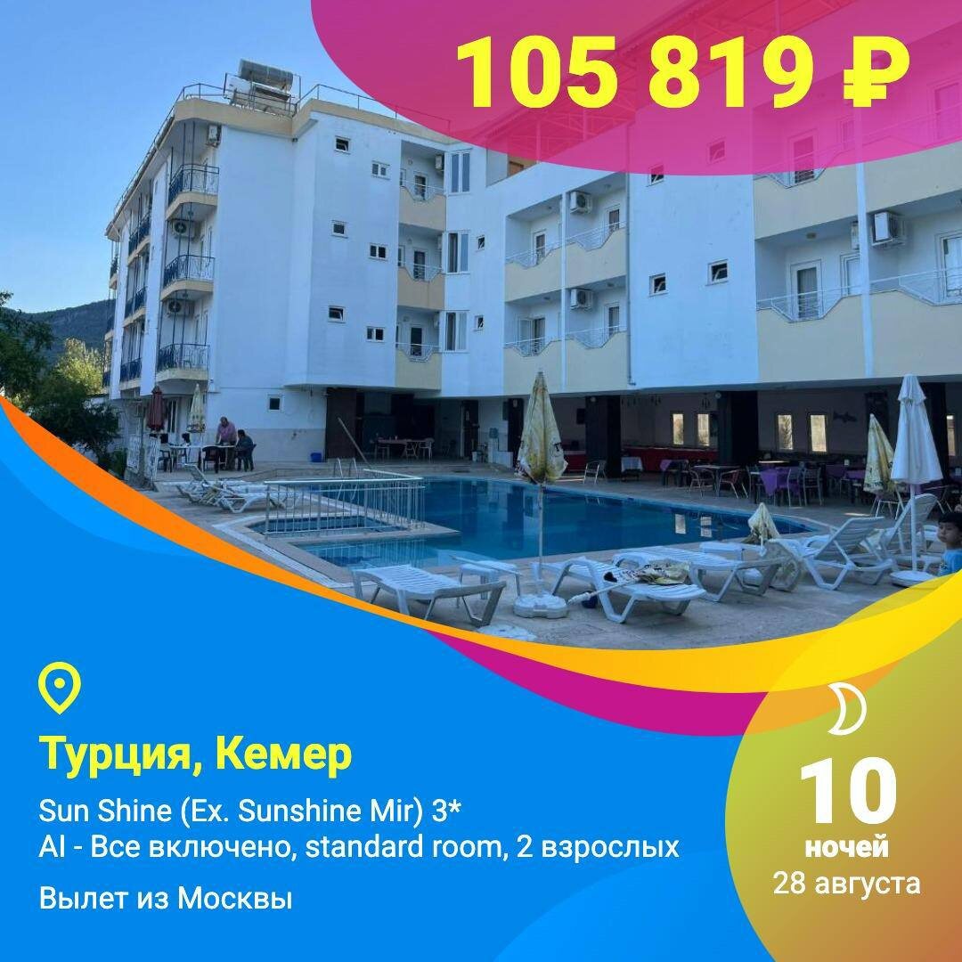Sun Shine (Ex. Sunshine Mir) 3* Турция, Кемер‼️ Бюджетный отель в поселке Бельдиби. Пляж располагается через дорогу, в 350 метрах. Система питания — AI. Подходит для размеренного пляжного отдыха. https://api.whatsapp.com/send?phone=79030097240 #путешествияитуры #алания #турцияанталия #кемертуция #отзыв #море #отпуск #кемер