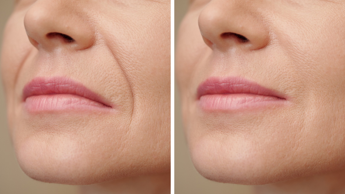Если вы видите, что у вас углубляется носогубной залом или появляется отёчный валик, тогда совершенно точно вам пора взять на вооружение простой комплекс упражнений по устранению носогубки. В этой статье — эффективные приёмы от носогубки любого типа: расслабим мышцы, формирующие залом, тонизируем скулы и подтянем щеки, найдем и проработаем главный мышечный узел (модиолус) для закрепления лифтинг-эффекта. Также я подготовила бесплатный тест, который поможет определить ваш тип старения и подобрать персональный комплекс упражнений для омоложения. А сейчас, все что вам потребуется — это чистые руки, чистое лицо. Поставьте указательные пальцы чуть выше носогубного залома, туда, где заканчивается мышца, поднимающая крыло носа и верхнюю губу. Её действие нам нужно зафиксировать. Повторите три раза весь цикл: выражение «фи», вдох, взгляд наверх, задержка дыхания, выдох и лёгкое протягивание ткани вниз пальцами. Теперь сделаем массажное воздействие. Поставьте плотно пальцы около боковой части