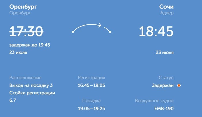 ✈️ Вылет самолета Оренбург - Сочи задержан