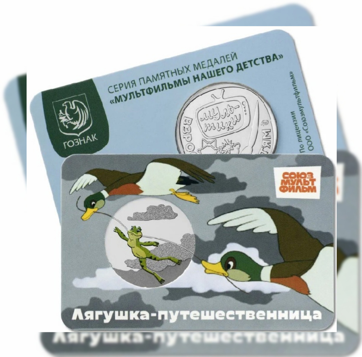 Лягушка-путешественница Московский монетный двор с 21 июля 2025 года выпускает памятный жетон «Лягушка-путешественница» - тринадцатый в серии «Мультфильмы нашего детства». «Лягушка-путешественница» — одна из пяти детских сказок писателя Всеволода Гаршина. Это история о приключениях лягушки-квакушки, которая однажды решила отправиться вместе с утками на прекрасный юг. Утки несли ее на прутике, но лягушке-хвастунишке не терпелось рассказать о своем большом уме и изобретательности. Лягушка квакнула и упала вниз, по счастливому случаю попала не на дорогу, а в болото. Там она стала рассказывать другим квакушкам всякие небылицы. Написана эта поучительная история живо, весело, с юмором и добротой. Впервые сказка опубликована в журнале «Родник» в 1887 году, а в 1965 году была выпущена экранизация истории для студии «Союзмультфильм». Она была создана мультипликаторами Вячеславом Котеночкиным и Александром Трусовым. Культовую сцену с изображение лягушки-путешественницы можно увидет