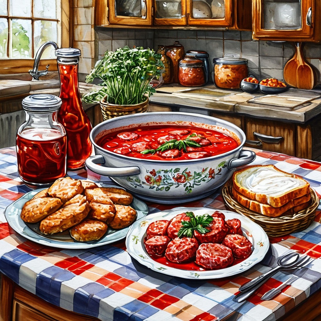 - Без ложной скромности скажу, что борщ мне особенно удаётся. Мой Анатолий мог есть его на завтрак, обед и ужин. Сейчас ещё один деликатес достану...