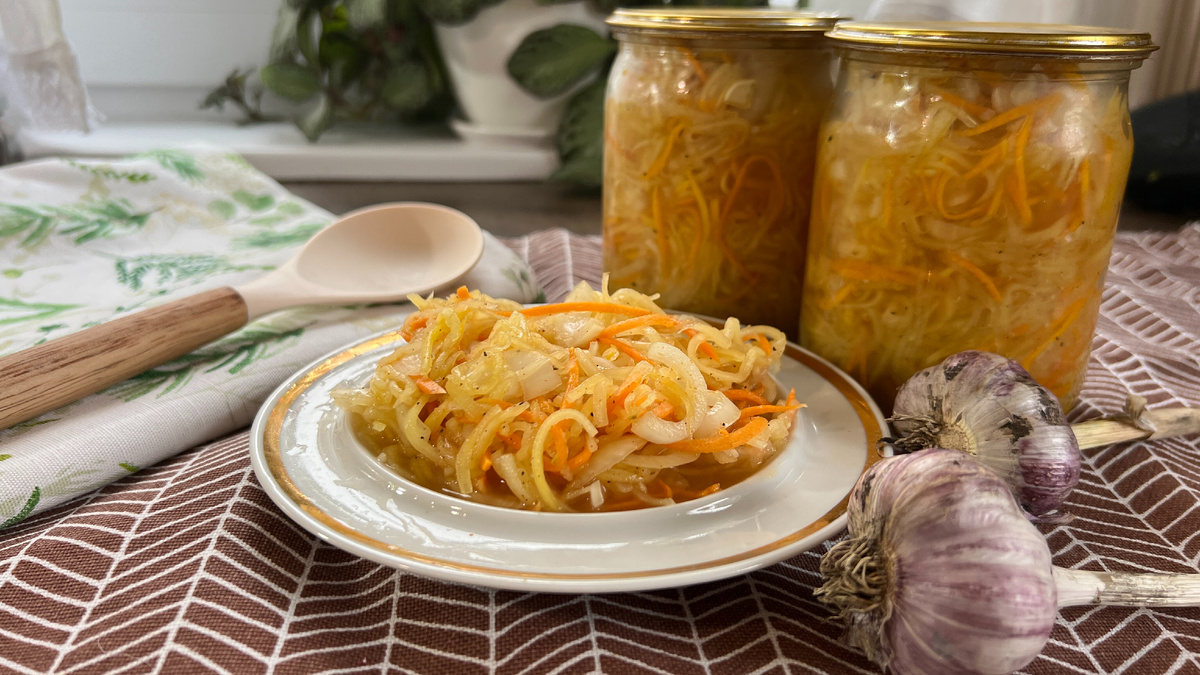 Сезон кабачков в самом разгаре, а я для вас приготовила легкий и быстрый, а главное вкусный рецепт заготовки на зиму, иногда называю - закуска из кабачков. Ингредиенты просты, всегда в постоянном доступе у каждого огородника. В готовом виде, попробовав, наши гости не с первого раза угадывают, что в составе есть кабачки))). Очень оригинально получается. Подготавливаем овощи- моем, у кабачков убираем кожицу и натираем его на терке для корейской моркови. Вес овощей берется в очищенном виде. Морковку тоже натираем на терке для корейской моркови, а лук- полукольцами. 3 кг. кабачков 0,5 кг. репчатого лука 0,5 кг. моркови Кладу овощи в большую кастрюлю и добавляю так называемую заправку: 1 стакан растительного масла 200 г. сахара 2 ст. ложки соли 1 ч. л. черного молотого перца 1 ст. л. приправы для корейской моркови 200 мл 6% уксуса Все перемешиваем и оставляем мариноваться на 1 час при комнатной температуре. Затем раскладываем по баночкам (я беру 500 гр.), ставим банки в кастрюлю с широким д