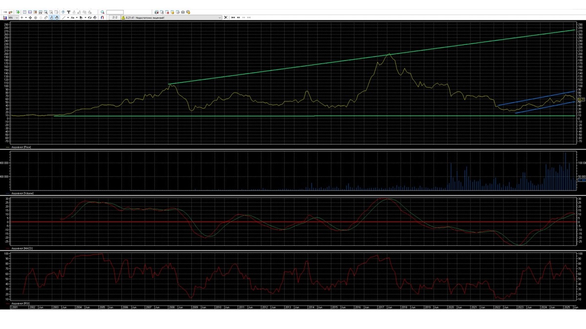Как видим, по компании Аэрофлот плохих и хороших новостей практически нет, с одной стороны, это хорошо. Значит все движение акции Аэрофлот буду оценивать за счет технического анализа и разбираться, куда сможет двигаться акция до середины сентября 2025 года.