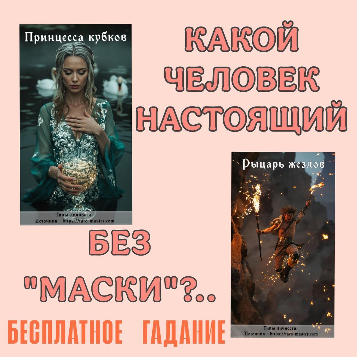 Здравствуйте, мои дорогие подписчики! Продолжаем разбор бесплатного гадания без регистрации на моем сайте. Пройти на страницу гадания можно по ссылке: https://taro-master.com/fortune Я вам ранее писала пример, какие вопросы можно рассмотреть. Следующий вариант. Пример 2. В вашу жизнь пришел новый человек (партнер, коллега, единомышленник и т.д.). Может он не раскрывается полностью, возможно что-то скрывает или находится в «маске». Чтобы понять какой он на самом деле, можно использовать гадание на моем сайте. Представьте человека, держите в фокусе внимания его мысленный образ, назовите имя, укажите возраст и пол. Задайте вопрос: Каким он себя транслирует мне? Посмотреть информацию и сравнить. Следующий вопрос: Какой он настоящий без «маски»? Читаете информацию, анализируете, делаете выводы. Теперь вы понимаете, что можно ожидать от человека, в случае кризисной или конфликтной ситуации, для обращаем внимание преимущественно на его теневые стороны. Гадание помогает разобраться в человеке
