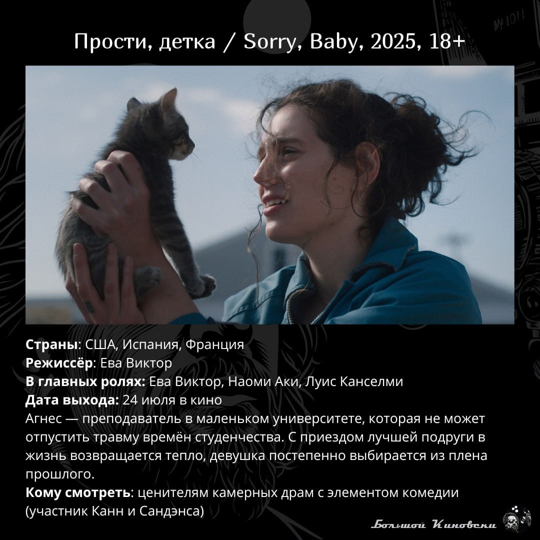 Победитель кинофестиваля в Торонто, участники Берлинале, Канн и Сандэнса, а также культовая Прогулка на большом экране В кинотеатрах, на стримингах и просто в сети (мы против пиратства, но часто хорошее кино не пускают в прокат, а часть сервисов прекратили работу в РФ) выходят десятки фильмов. Из общей массы мы выделяем самые интересные, которые стоит (или не стоит) посмотреть. P.S. 29 июля состоится цифровой релиз «28 лет спустя», о котором мы уже подробно писали Большой Киновски 🎬 | #премьеры_недели