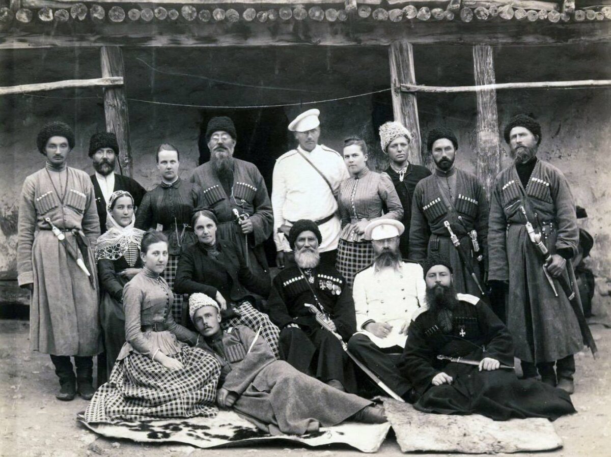 Семья археологов-кавказоведов Уваровых на Кавказе с группой туземных осетинских начальников. Терская область, 1890 г. (@pancaucasus)