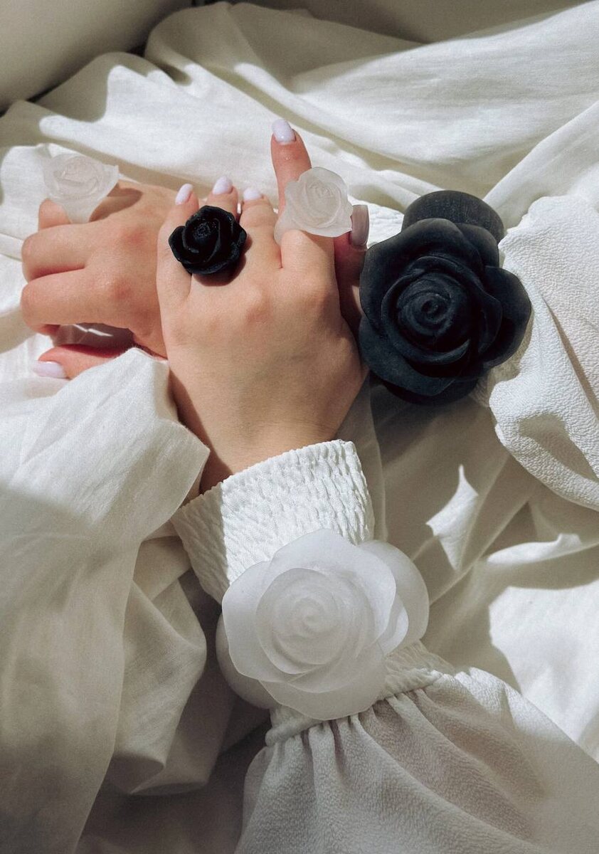 Вайб этому сезону задает лимитированная капсула CHIC CLIC. Полимерные материалы с бархатистой на ощупь текстурой. Считаем, что это настоящий мастхэв: сочетаются массивность, легкость и ручная обработка. А ещё браслеты в дропе представлены в двух форматах. Первый — базовый из золота, серебра или элегантного черного. Второй вариант — акцентные объемные цветы. Флоральные формы продолжают невесомые кольца, несмотря на некую монументальность. #ФокусМода_украшения