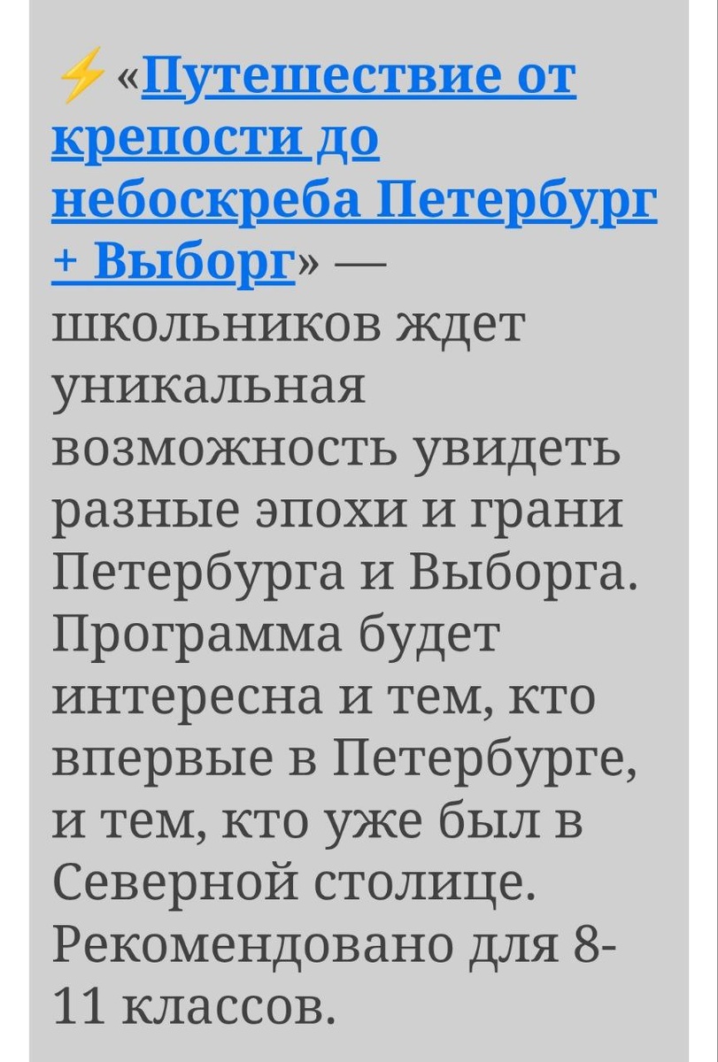 Путешествие в Санкт-Петербург для групп 10+1, 20+1 и более человек. Тур-новинка "Путешествие от крепости до небоскрёба. Петербург + Выборг" Длительность: 4 дня / 3 ночи; 5 дней / 4 ночи. Даты: с 01 октября 2025 по 31 марта 2026 года. Стоимость: от 16960 рублей. Программу и стоимость направим в личные сообщения, напишите нам на Ватсап, Телеграмм Свадьба-Тур по номеру +79093774318