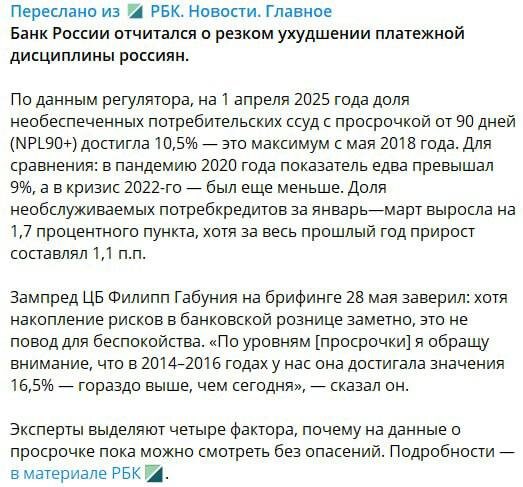 с 1 апреля 2025 года резко выросло число неплательщиков по кредитам. И, внимание — показатель уже выше, чем во времена пандемии. О чём это говорит? Всё просто — люди тонут в кредитной яме и не могут из неё выбраться. А теперь главное: текущая ставка — это вообще космос. 30%+ годовых — это не про платёжеспособность, это про выживание. Банки теперь уже не раздают кредиты направо и налево — борются с перегретостью и закредитованностью населения. Что делать, если ты дошёл до кредитного дна? Всё. Дальше — только наверх. Подписывайся на мой ТГ-канал, там я чётко и по шагам объясняю, как законно выбраться из долгов и начать новую жизнь без кредитов. Остались вопросы? Пишите в личку — разберу вашу ситуацию бесплатно
