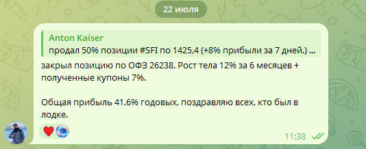 Часть денег снова ушло в #SFIN, сделаем в клубе ещё под 50% годовых. Следите за новыми сделками — будет интересно!