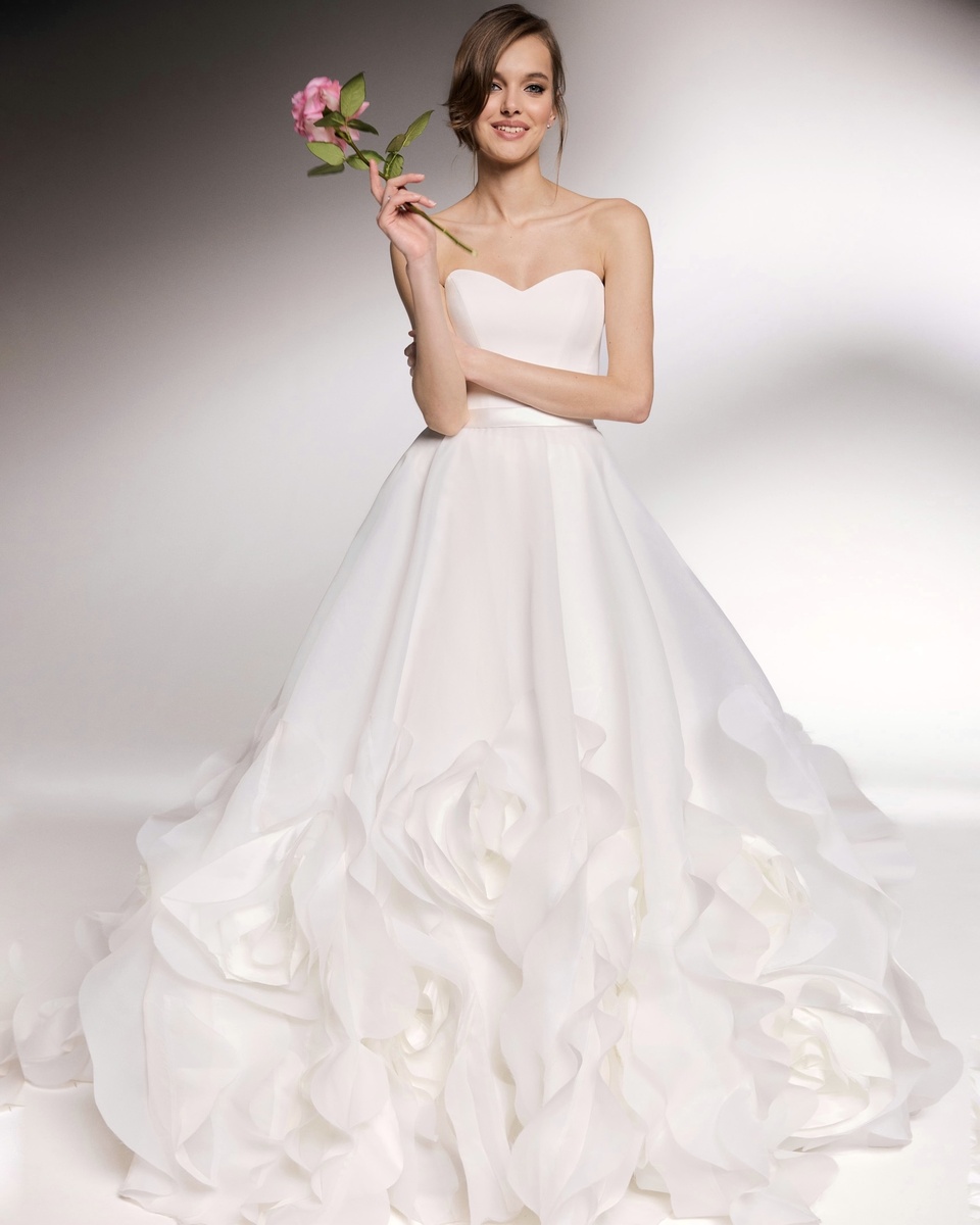 Свадебное платье - это не просто наряд. Это воплощение детской мечты, счастье и отражение внутреннего состояния невесты. Именно поэтому так важно найти то самое платье. В Aurora мы собрали коллекцию самых нежных моделей, которые идеально подойдут для современной невесты: утонченной, мечтательной, женственной. Делимся нашей подборкой фаворитов. 1. MIRACLE — воплощение классики и благородства Платье MIRACLE — это истинная классика, доведенная до совершенства. А-силуэт подчеркивает фигуру, а гладкий белоснежный атлас сияет мягким благородным блеском. Платье без рукавов, открытая спина и волны подола придают образу изящную динамику. Оно идеально подойдет для торжественной церемонии в дворцовых интерьерах или на открытом воздухе. 2. ADEL — кружевная сказка Это платье - воплощение нежности за счет цветочного кружева. Крупные цветочные узоры придают платью неповторимое очарование, а шлейф завершает романтичный образ. ADEL подойдет невестам, которые мечтают о сказке наяву. 3. RAFAELLO —