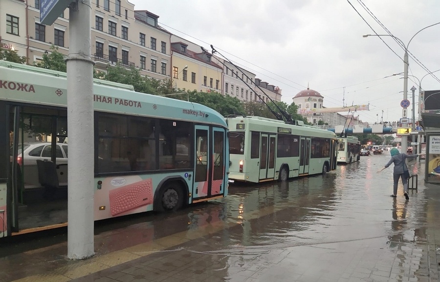Минск снова подтопило. В Минсктрансе предупредили, где перестал ходить общественный транспорт — Видео