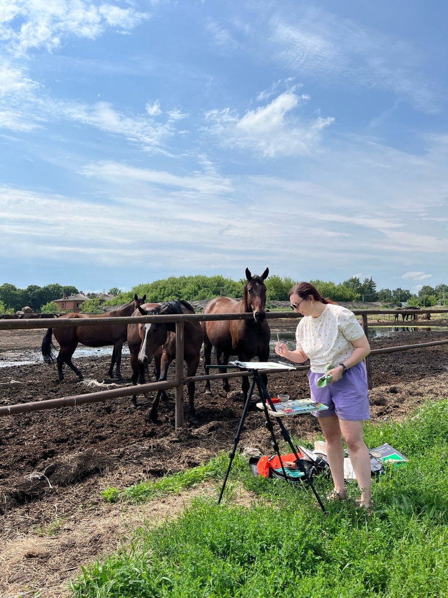 Рязанские художники-пленэристы выходные проводят в историческом месте – усадьбе-конезаводе фон Дервиза в Старожилове. 🐎