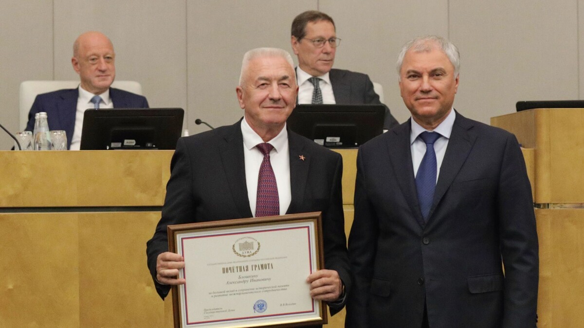 Работа Александра Блошкина отмечена на федеральном уровне. Волгоградскому спикеру вручили почетную грамоту. Фото: Волгоградская областная Дума Председатель Волгоградской областной Думы Александр Блошкин удостоен почетной грамоты Государственной Думы. Награду накануне вручил спикер Вячеслав Володин на пленарном заседании нижней палаты парламента. Почетная грамота вручена за большой вклад в сохранение исторической памяти и развитие межпарламентского сотрудничества. Александр Блошкин отметил, что перед Волгоградской областью стоят большие задачи, в том числе по сохранению и изучению наследия Победы и патриотическому воспитанию молодежи. Напомним, Вячеслав Володин приезжал в Волгоград в дни проведения международного форума «Великое наследие – общее будущее». В форуме также приняли участие президенты России и Беларуси – Владимир Путин и Александра Лукашенко. Смотрим «Вести. Волгоград»: smotrim.ru/Volgograd Подписывайтесь на наши страницы в соцсетях: Telegram, ВКонтакте, Одноклассники, Дзен