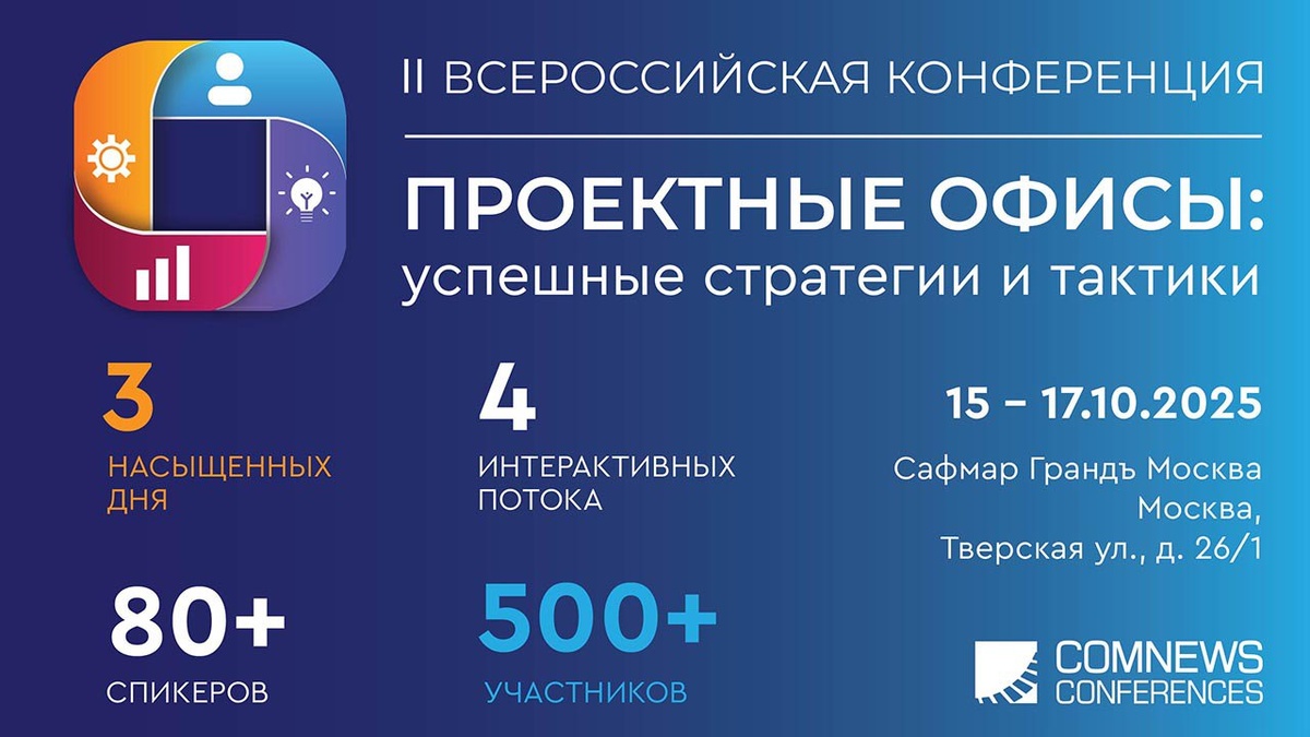 Проектные офисы: успешные стратегии и тактики. 15-17 октября 2025г. в отеле Сафмар Грандъ Москва открывает свои двери II Всероссийская конференция «Проектные офисы: успешные стратегии и тактики» - главная встреча руководителей проектных офисов и их команд для обсуждения вопросов трансформации роли проектных офисов и обмена опытом применения проектного подхода в разных сферах бизнеса. Проектная практика — информационный партнёр конференции. 👉Подробнее.