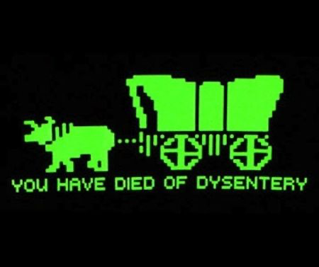 Суть тайтла заключалась в управлении группой переселенцев, путешествующих по Америке. И хоть в 70-х о комфорте геймеров мало кто задумывался – игра была очень сложной по другой причине. Разработчики пытались отразить все тяготы того времени – ресурсы строго ограничены, а умереть можно от любой напасти. Самым частым обстоятельством выступала дизентерия. При этом словить «зеленый экран смерти» было проще простого – надпись появлялась рандомно.