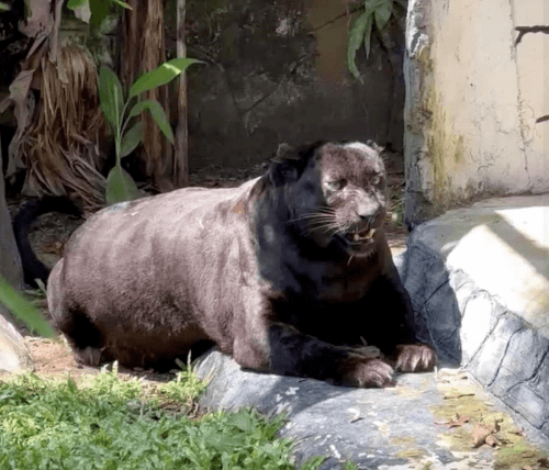(или даже моржа), но надпись на табличке гласила, что это чёрный леопард