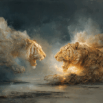 Порой, глубоко в хранилищах памяти человечества, таятся сказания, что способны перевернуть наше восприятие действительности. Эти древние предания, почти стёртые временем, все же хранят в себе отголоски невообразимых событий. Так, например, есть ли это сказание о титанической схватке двух великих зверей, чья мощь была способна расколоть саму ткань бытия? Представьте себе мир на заре времён, когда небо ещё не отделилось окончательно от земли, а первые реки лишь нащупывали свои русла. В ту пору, как говорят старые свитки и шепот ветра, все сущее было пронизано первозданной энергией – неистовой, необузданной силой. В этом хаосе, который тоже был почти совершенен, возникли они: Золотой Тигр и Нефритовый Тигр. Золотой, как и можно было бы предположить, был воплощением пламенной ярости, огненной мощи, силы, что сметает все на своем пути. Его шкура сияла, словно расплавленное солнце, а каждый его рык сотрясал, казалось, сами основы мироздания. Нефритовый же, напротив, был порождением мудрой зе