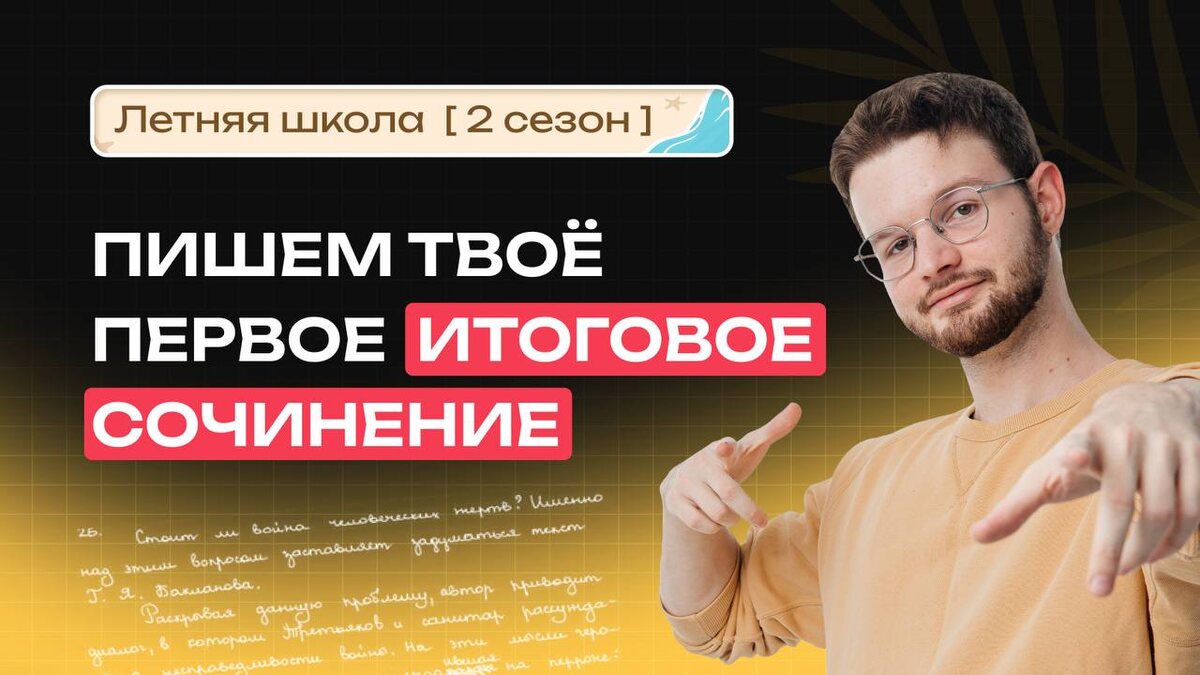 Сегодня пишем твое первое Итоговое сочинение! По плану, с аргументами, с четкой позицией по теме. В общем, используем все знания, чтобы набрать максимум баллов по критериям 🏓 —> Практикуемся в 14:00 по МСК YouTube: https://youtube.com/live/wp1t0W-3Taw ВК: https://vk.com/video-198879630_456239699 🫰🏻А еще на каждом вебе Летней школы я разыгрываю 2000₽ на маркетплейс среди участников. Главное — быть онлайн!
