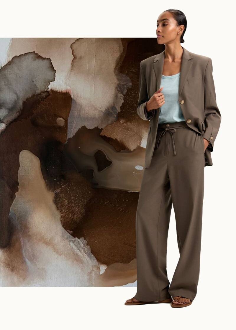 Цвет, который вдохновляет🎨 Мы собрали несколько образов и соединили их с абстрактными картинами, где звучат те же оттенки. Мягкий хаки, приглушённый голубой, тёплый шоколад, серый с розовым акцентом — цвета, которые легко живут и в гардеробе, и на холсте. nice-one.ru