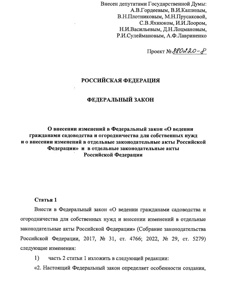 ⚫️ Госдума приняла в окончательном чтении законопроект № 880220-8, который меняет правила владения и распоряжения садовыми и огородными земельными участками. Ключевое: ввели запрет на отчуждение земельных участков отдельно от расположенных на них домов и построек. С 1 сентября 2025 года: ▶️ Собственник садового участка не вправе его отчуждать (продавать, дарить и т.д.) без расположенного на нем жилого/садового дома или хозпостроек. Это исключит юридические вопросы, когда участок и расположенные на нем здания имеют разных собственников. ▶️ Предельные габариты жилых и садовых домов на садовых участках должны определяться градрегламентами и соответствовать параметрам объектов ИЖС, заданных законодательством о градостроительной деятельности. ▶️ Уточнен список хозпостроек. Это сараи, бани, теплицы, навесы, погреба, летние кухни и колодцы. Если такие объекты — составные части жилых или садовых домов, то они не считаются хозяйственными постройками.
