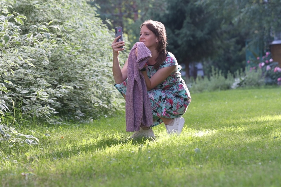 Готово! Принимай работу, хозяйка!:) Довязала, насколько хватило ниток. В моём вязальное меню на лето этот свитер значится как "десерт", потому что он - переделка. Нужно было удлинить, перевязав нижнюю часть: Перевязала. Часть пряжи была после роспуска, другая часть - новая пряжа в фабричной пропитке. Сразу после спиц низ у свитера из-за этого отличается и выглядит нетоварно, поэтому мы (свитер и я) идём в стирку, по пути фотографируясь: В свитер очень приятно кутаться, он мягкий и тёплый, вдобавок впитал в себя "кучу солнца", пока вязался: На следующий день после стирки всё неровное выровнялось, и свитер можно было вручать хозяйке, но перед этим обязательно оставить себе на память несколько его фото:). Фотографировать выпало при пасмурной погоде, а это как раз самые лучшие условия для съёмки вязаных вещей, так как всё вязаное на них смотрится ещё уютнее. На крупных планах и вовсе можно рассмотреть каждую петельку или цветной бугорок: Потом пасмурность сменилась дождём, потом он зако
