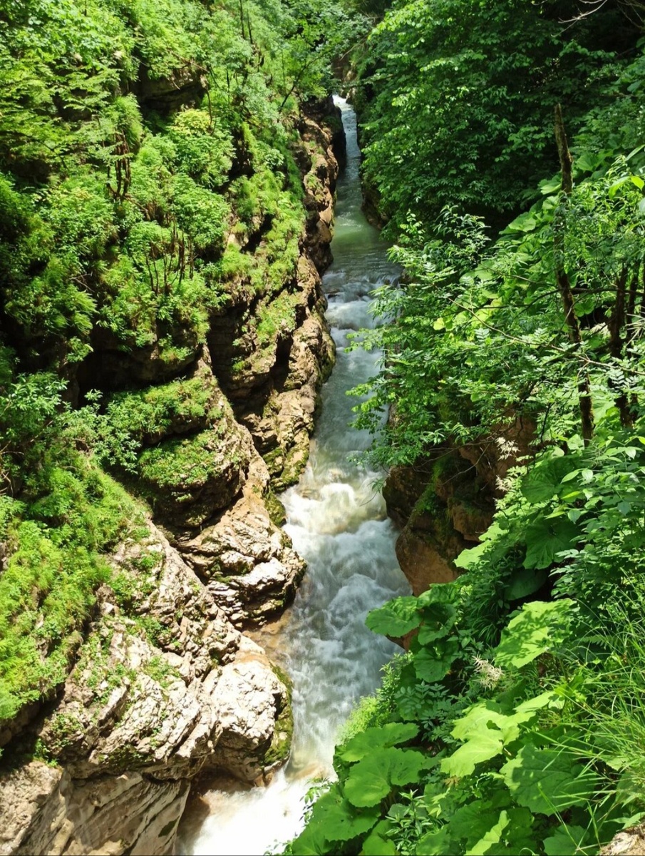 День 7 нашего вояжа по Адыгее тоже обещал быть долгим, ведь мы отправились в Гуамское ущелье! Пожалуй, это вторая самая популярная достопримечательность региона вкупе с плато Лаго-Наки. Фактически оно находится не в Адыгее, а по соседству - в Краснодарском крае - и тянется вдоль реки Курджипс на 5 километров. Его название - это комбинация двух адыгских слов, переводимых как «высохший» и «запах». Ароматы там действительно роскошные: самшита, тиса, пихты, дуба, сосны. А "высохший", видимо, потому, что когда-то здесь расстилался древнейший океан Тетис. Хотя версий происхождения названия много. Так, еще одна говорит, что она происходит от слова "гуамэ" - "зловоние" или "запах омелы". А историкам нравится свой вариант: во время войны с турками в 1717 году адыги обманом загнали врага в ущелье и закидали сверху камнями, похоронив таким образом около 5000 человек. И "гуам" - это "место, где похоронен враг" . Выбирайте любую версию, которая нравится 🌞 Гулять по ущелью можно весь день,