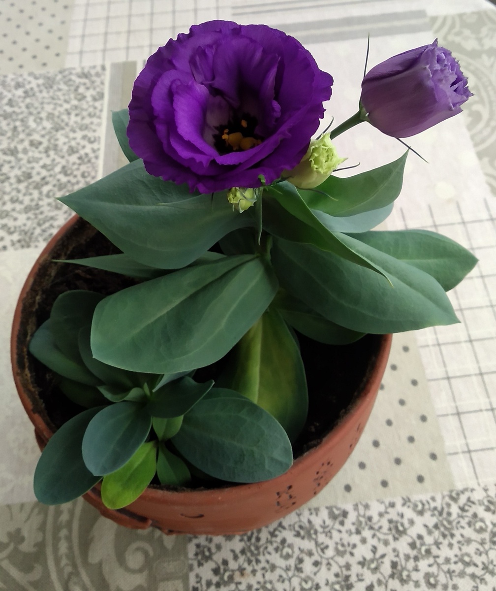 Эустома роскошный цветок, который очень долго стоит в срезке. И даже в вазе бутоны эустомы способны распускаться, что делает этот цветок очень привлекательным для создания потрясающих букетов. У этого цветка много других названий : лизиантус , ирландская или японская роза, техасский колокольчик и даже роза любви. Родом цветок из Южной Америки и в дикой природе бывает только синего цвета. А махровые белые, розовые, сиреневые и даже двуцветные сорта растения выведены человеком путем отбора и скрещивания. Очень мне хотелось вырастить этот цветок самой , хотя я знала, что это очень длительный процесс. И в конце 2024 года наконец то решилась. Выбор остановила на карликовой форме не выше 30 см , так как не планировала высаживать растения в открытый грунт (растение теплолюбиво и в наших широтах не растет , даже незначительное похолодание ниже +5 градусов может убить растение) . 1 ноября посадила 10 семян (в каждом пакетике по 5 семян , а цена то около 200 руб. за пакет😞) и закрыла горшо