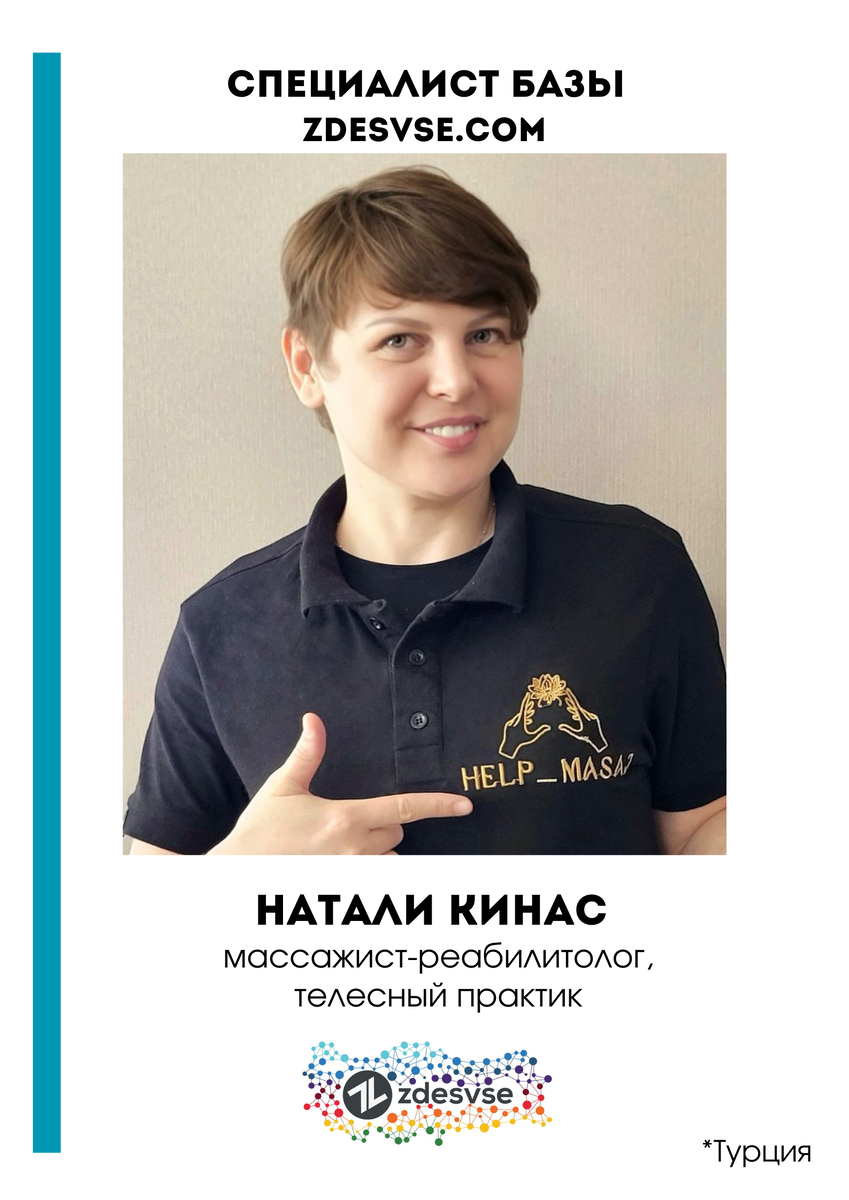 Продолжаем ходить в гости к нашим специалистам в Турции. Сегодня мы в уютном кабинете массажиста-реабилитолога Натали Кинас в районе Бакыркёй. Натали уже более 12 лет работает с телом и состоянием, прошла обучение по различным направлениям массажа и реабилитации, в том числе: * медицинский и реабилитационный массаж; * лимфодренажные техники; * остеопатические и мануальные практики; * эстетические и расслабляющие методики. Постоянно повышает свою квалификацию, изучает новые подходы, сотрудничает с клиниками и врачами в рамках медицинского туризма. "Моя задача — не просто расслабить мышцы, а помочь телу восстановиться, вернуть свободу движения и облегчить боль". Листайте карусель, изучайте профиль Натали, знакомьтесь ближе и ... будьте здоровы!