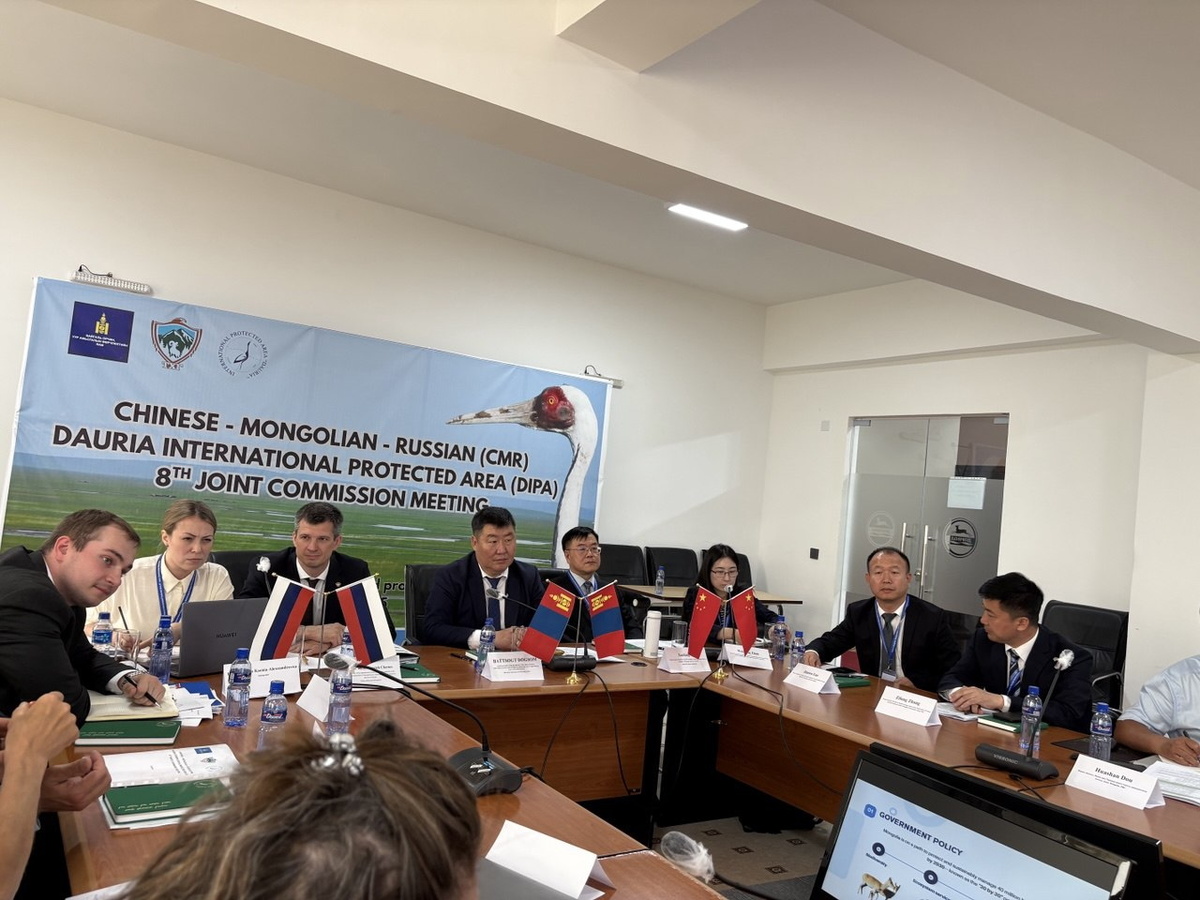 Специалисты заповедника «Даурский» приняли участие в работе 8-й смешанной комиссии по китайско-монгольско-российской особо охраняемой природной территории «Даурия» (DIPA), которая прошла 17–20 июня 2025 г. в г. Чойбалсан (Монголия). Российская делегация включала представителей Министерства природных ресурсов РФ (А.В. Чертов, заместитель директора Департамента государственной политики и регулирования в сфере развития особо охраняемых природных территорий МПР РФ и Г.К. Рунов, специалист МПР РФ) и руководителей и специалистов заповедника «Даурский». Российской стороной было представлено два доклада: – Отчёт о деятельности заповедника «Даурский» в рамках международного заповедника «Даурия» за период 2020–2024 гг. (к.б.н. Т.Е. Ткачук, к.б.н. О.А. Горошко);