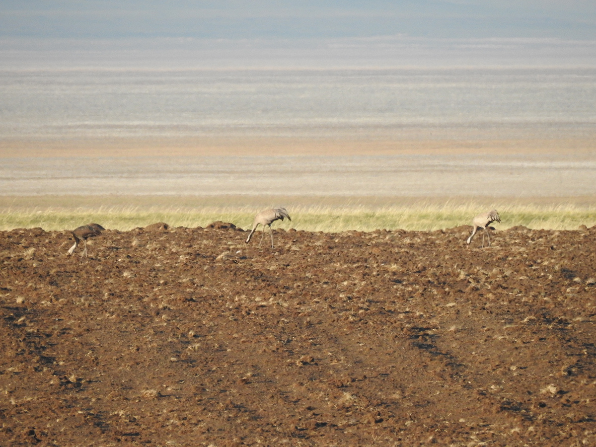 Серые, черные журавли и журавли красавки стали постоянными посетителями подкормочных полей, которые сеют сотрудники Даурского заповедника. Поля для подкормки и привлечения птиц, прежде всего краснокнижных, впервые организовали в рамках проекта «Спасение восточной дрофы» еще четыре года назад. Предполагалось, что такие поля помогут завлечь на охраняемые территории дроф. А это позволит лучше обеспечивать их защиту и обеспечивать покой. Надежды оправдались ‒ на одном из полей тогда удалось сформировать крупное токовище и значительно увеличить гнездовую группировку дроф в окрестностях пашни. Как и ожидалось, поля стали привлекать и других пернатых. В течение лета и осени на них кормятся и другие краснокнижные виды птиц: журавли красавки, а также черные и серые журавли, гуси-гуменники и другие. В этом году, учитывая положительный опыт прошлых лет, также засеяли два поля - одно в Межозерье, а второе недалеко от села Буйлэсан Ононского округа у озера Цаган-Нур. Все поля оборудованы электричес