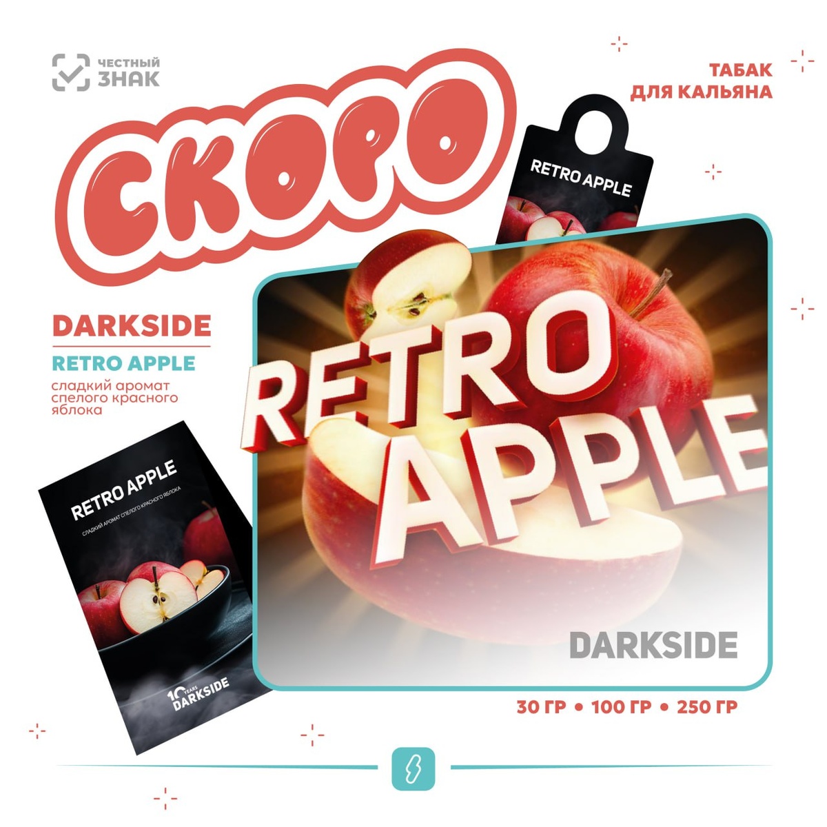 Скоро попробуем ностальгию на вкус! 💛DARKSIDE RETRO APPLE — новый вкус в коллекции! Сочный, сладкий аромат спелого красного яблока Ничего лишнего — только классика, поданная на современный лад Как тебе анонс? Будем пробовать?