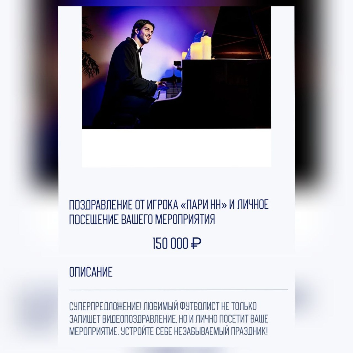 Помните писала про бизнес Краснодара? Вывод игроков и судей на поле за денежку 🤑 Так вот есть предпринимательская жилка и в «кармане России»! Всего за 150.000 рублей игрок Пари НН посетит ваше (наше?) мероприятие и поздравит вас с тем, с чем вы хотите быть поздравленными. Если встретиться с игроком вы пока не готовы, можете пригласить на ваш праздник Нинча. Правда, цена на эту услугу пока не указана. Многие болельщики в НН сетовали, что клуб не устраивает встречу с футболистами. Так вот теперь при желании болельщики могут просто скинуться 😁 Как вам такие новости? По-моему, у нас очень талантливые ребята. Украсят любое мероприятие.