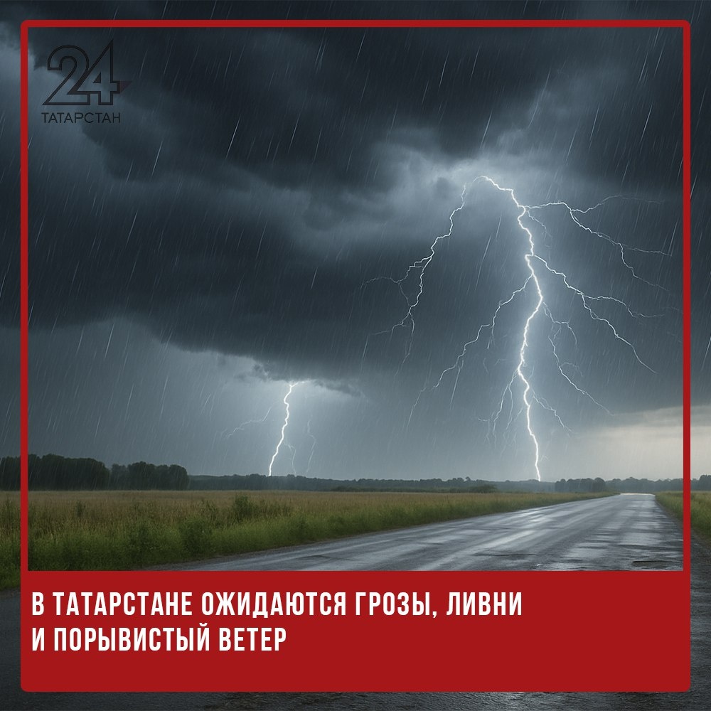 ⛈💨В Татарстане ожидаются грозы, ливни и порывистый ветер