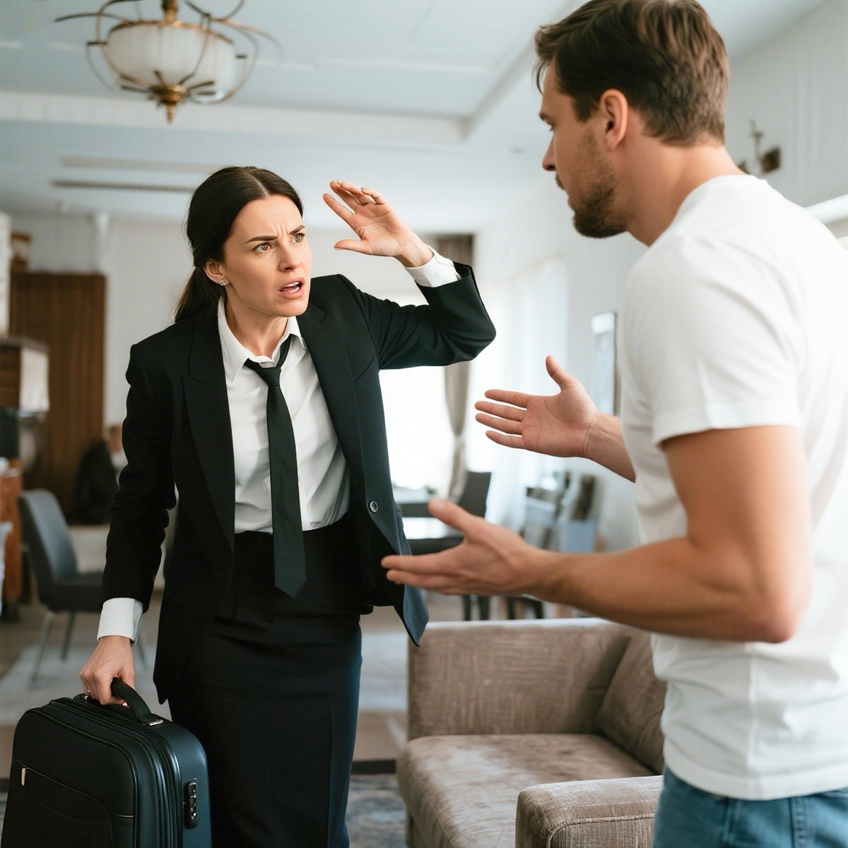 Лена стояла в прихожей с чемоданом в руках и смотрела на огромный телевизор, который занимал почти всю стену гостиной. Её лицо было бледным от гнева, а губы дрожали.