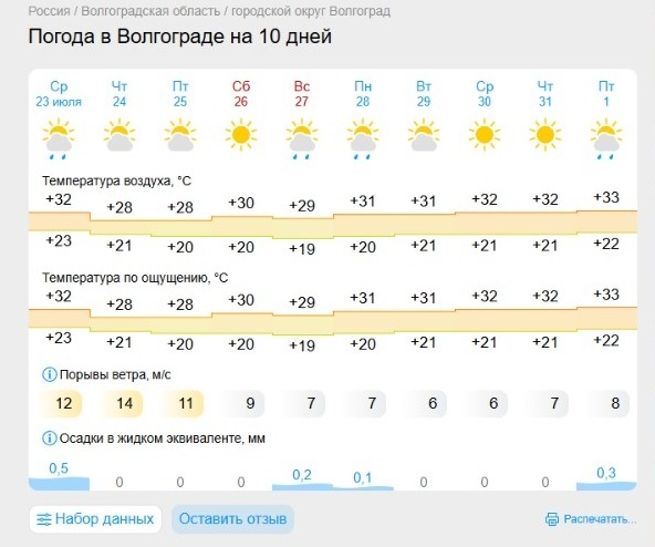 Антициклоны уже начали свою работу: вытеснять фронты с северо- и юго-запада на восток. Основное ядро непогоды сегодня будет смещаться в Предуралье из центра России. Результатом этого станет то, что в ряде регионов, в основном это касается средней полосы, осадки заметно ослабеют. Что же касается волгоградцев, то здесь речь идет уже про температурный режим. Дожди уйдут от нас, солнца станет больше, и оно продолжить распалять июльский горячий воздух. Так, сегодня волгоградцы в эпицентре жары: