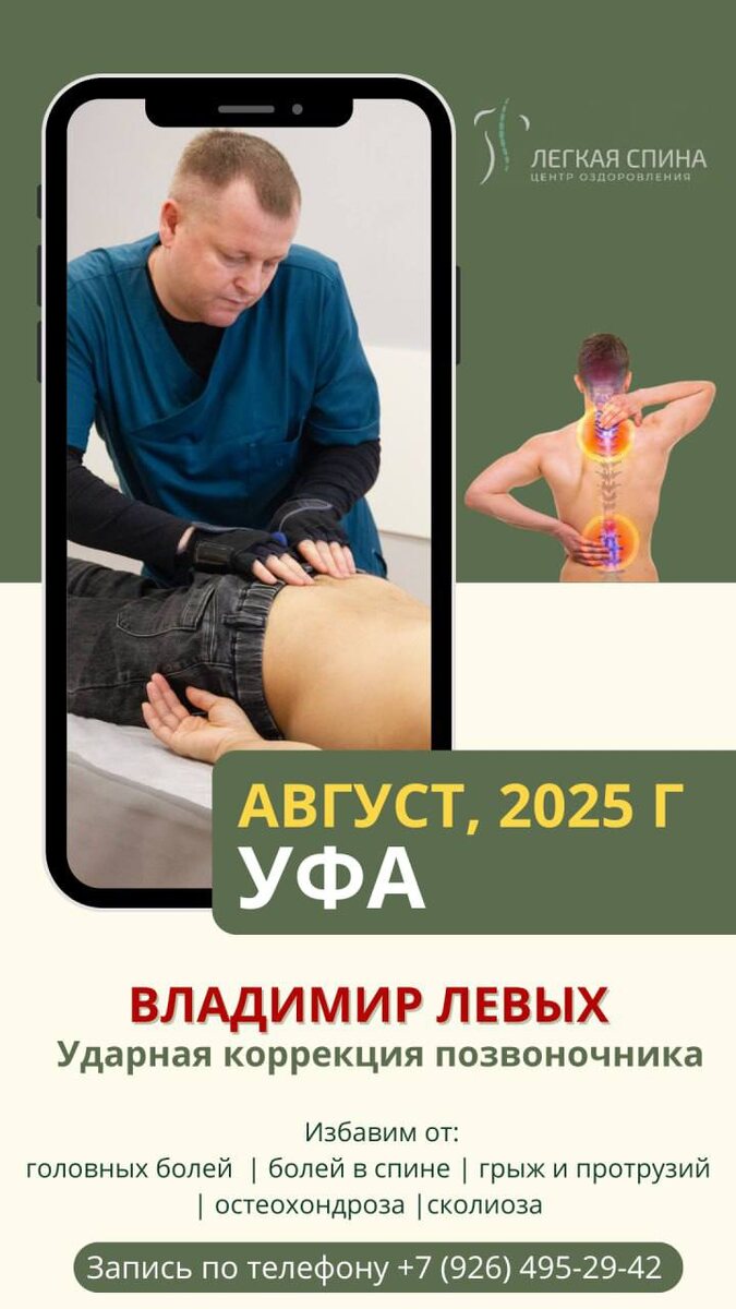 ✈️ РЕГИОНЫ В АВГУСТЕ Июль еще не закончился, а мы уже планируем, кто из специалистов и где будет принимать в августе 🌿 ✅ ОЛЕГ МАТВЕЕВ, старший специалист центра Легкая Спина, специализирующийся на мягкой и ударной коррекции позвоночника: 📍Казань 📍Калининград 📍Тюмень 📍Смоленск ✅ АЛЕКСАНДР ДАНИЛОВ, специалист по мягкой и ударной коррекции позвоночника, диафрагмальным практикам: 📍Благовещенск 📍Хабаровск 📍Владивосток 📍Южно-Сахалинск 📍Самара ✅ ВЛАДИМИР ЛЕВЫХ, специалист по ударной коррекции позвоночника 📍Уфа ✅ ДМИТРИЙ МАСЛОВ, специалист по интегральной биодинамике, биомеханике 📍Южно-Сахалинск 📍Владивосток Если вы хотите, чтобы специалисты приехали в ваш город, оставляйте заявки, как только наберется группа, мы обязательно вас посетим 😉 ✍️Запись +7 (926) 495-29-42
