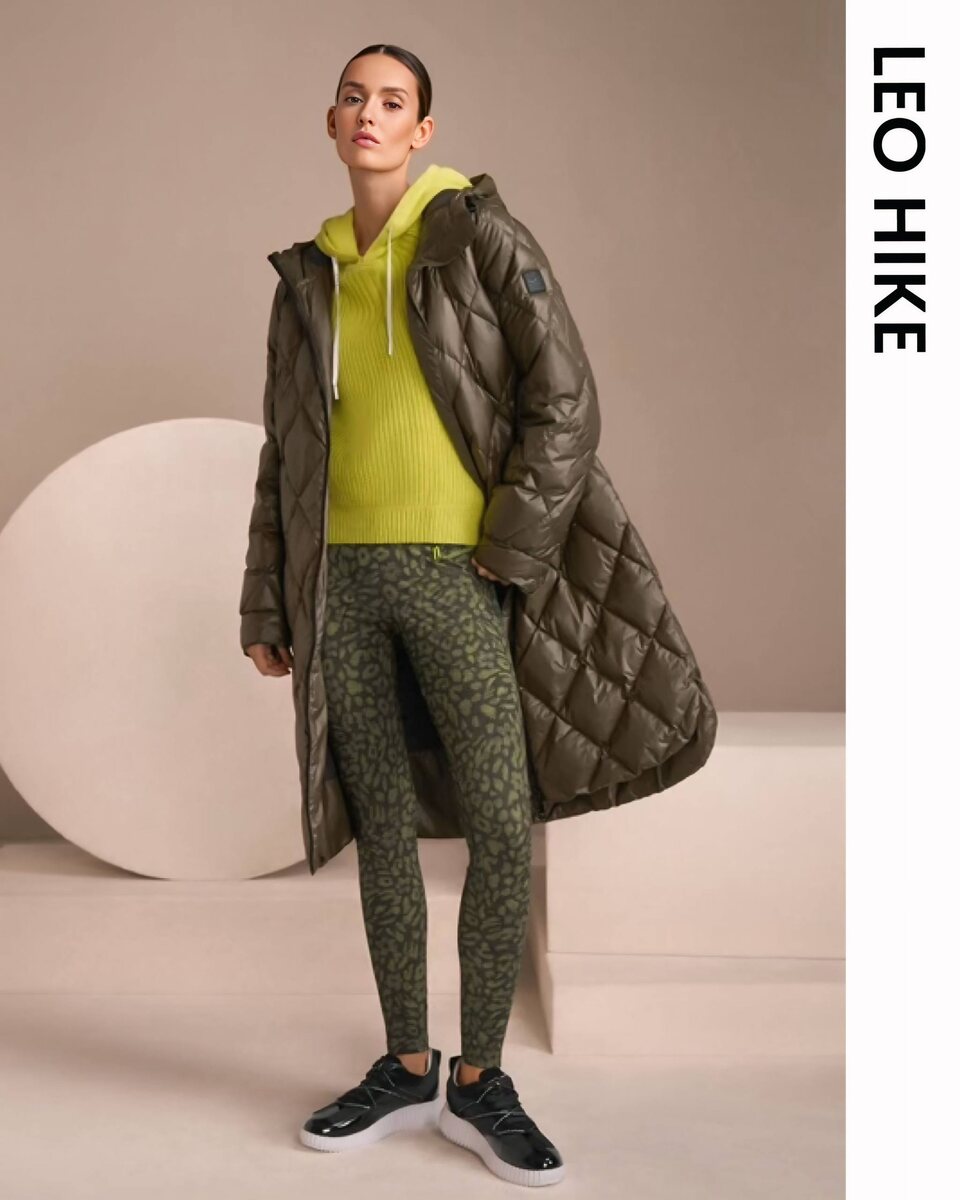 Для активного отдыха представлены лёгкие стёганые пальто с капюшоном, приталенные функциональные куртки и летний пуховик в эффектном ярко-жёлтом цвете. Их дополняют куртки-рубашки с мягкой подкладкой. Женственность коллекции подчёркивают воздушные блузки и платья из принтованной вискозы.