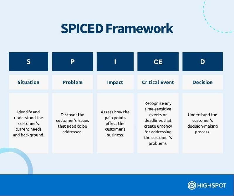Можно ли исследовать и продавать одновременно? 🤔 Сегодня поговорим про продажи в B2B. На размышления на тему меня натолкнул материал выступления Димы Ивановского, руководителя отдела продаж в PandaDoc (американский единорог 🦄) и основателя нескольких собственных стартапов. Идея Димы состоит в том, что в продажах важно не только получить как можно больше лидов, но и понимать, с какими из них действительно стоит работать — и как глубоко. Поэтому на разных этапах воронки используются разные методологии квалификации. 📊 Поговорим о первичной оценке – когда связь с клиентом еще не очень крепкая и у нас много неизвестных. На этом этапе у нас задача — понять ситуацию клиента, потребности и мотивацию к покупке. Дмитрий предлагает сейлзам и аккаунт-менеджерам Discovery-звонок по методу SPICED. ☎️ Цель звонка • Проверить, насколько клиент соответствует ICP (идеальному клиенту). • Понять мотивацию клиента. • Выстроить контакт и провести глубокую диагностику. • Собрать все ключевые данные д
