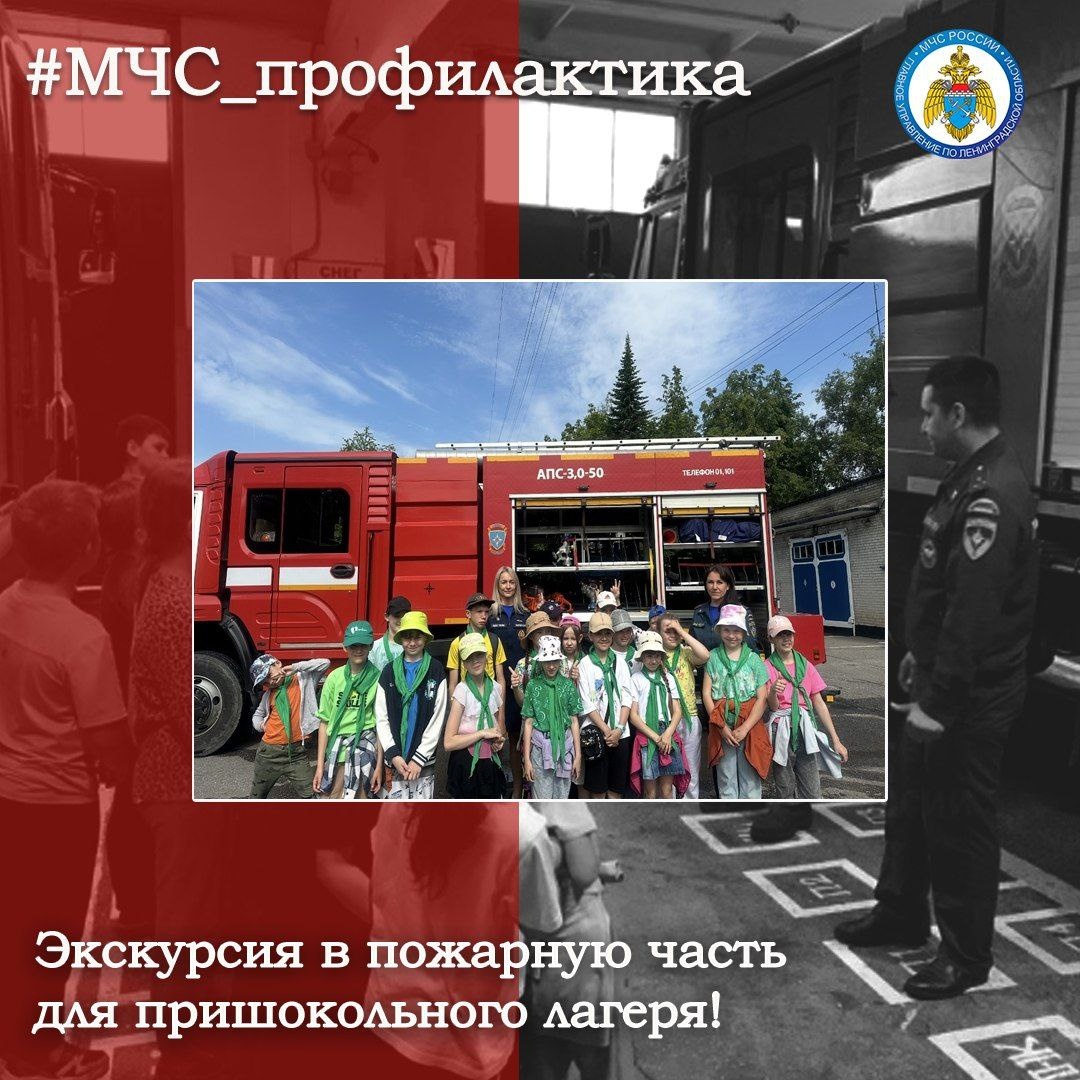 Экскурсия в пожарную часть 👨🚒 Сотрудники ОНД и ПР Тосненского района совместно с представителем местного отделения ВДПО Ленинградской области провели экскурсию в пожарную часть №86 для воспитанников пришкольного лагеря Ушакинской школы. 🧸 Во время экскурсии дети прошли по всем помещениям пожарной части, увидели, где служат пожарные МЧС России и как готовятся к выезду на вызов. 🔸 Подобные встречи формируют у подрастающего поколения осознанное отношение к безопасности и уважение к пожарным – людям героической профессии! #МЧС_профилактика МЧС Ленинградской области