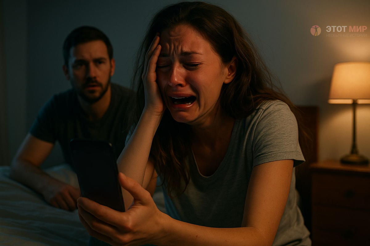Мария отключила телефон — рука сжимала пластик так сильно, что побелели костяшки. Она рыдала. Олег сидел на кровати, потерянно глядя на жену.