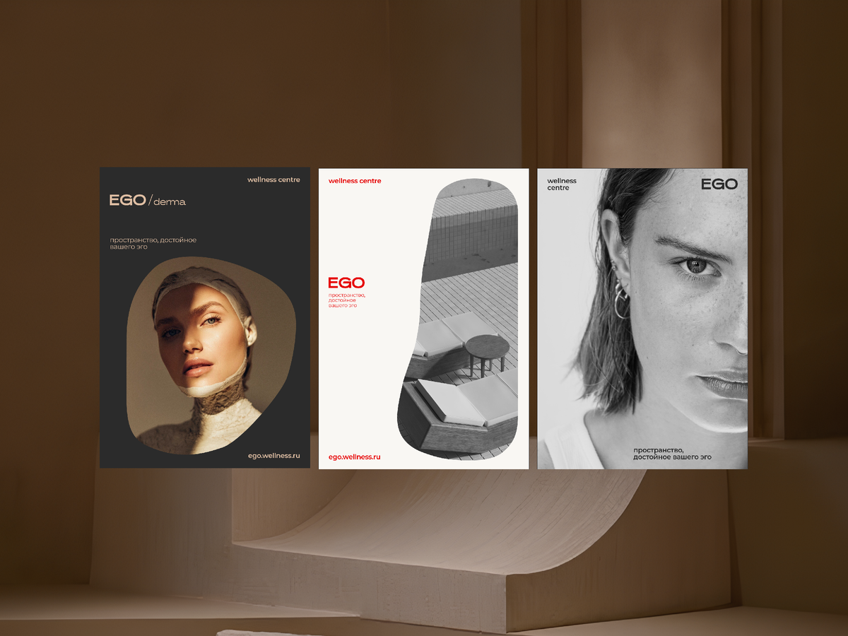 Премиум-сегмент не покупает продукты — он покупает ощущения, статус и сценарий жизни. Мы убедились в этом, создавая фирменный стиль для EGO — wellness-центра на Рублёвке. Рассказываем 7 правил, которые работают всегда. У премиум-клиента уже есть всё необходимое. Он платит не за «массаж» или «спа», а за чувство, что он сделал правильный выбор для себя. EGO строится на концепции здорового эгоизма: забота о себе — это норма. Эта идея стала основой коммуникации. «Пространство, достойное вашего эго» — дерзко, честно, в точку. Такой слоган вызывает эмоцию и желание примерить этот статус на себя. Если слоган можно напечатать на мерче и он не будет выглядеть странно — вы попали в цель. Премиум не терпит визуального шума. Мы сделали минималистичный шрифтовой логотип на базе RockStar SemiBold. Чёткие формы, уверенность, никаких декоративных «украшательств». Для EGO это органическая форма, повторяющая архитектуру комплекса. Она стала фирменным фреймом для фото и текстур. Это узнаваемый элемент,