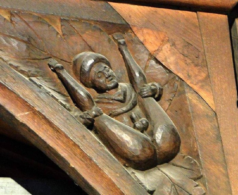 800 лет назад в церкви Всех Святых в Херефорде умелый плотник вырезал этого джентльмена высоко под тёмной крышей — там, где его никто не мог