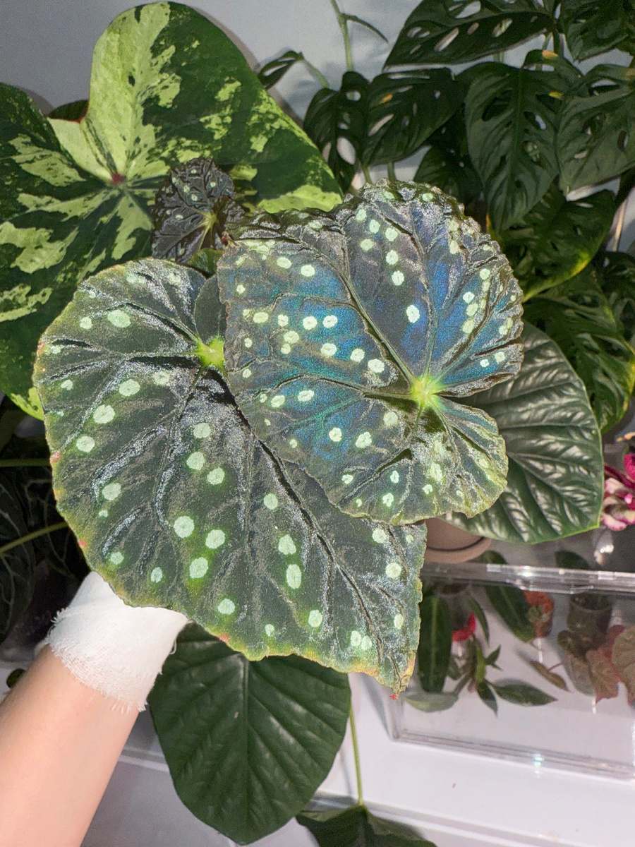 Давно у меня не было крупных покупок. Мне так захотелось увеличить коллекцию своих декоративно-лиственных бегоний. Как мне повезло, что в моём городе живёт коллекционер и селекционер бегоний, благодаря этому свою хотелку я реализовала быстро. Смотрите мои новинки и пишите, какая больше понравилась🥰 1) Starry sky 🔦. Очень красиво отражает свет😍; 2) КАО - Метеоритный дождь💗; 3) Pink minx🌸; 4) Irian Jaya. Дали в подарок 🎁