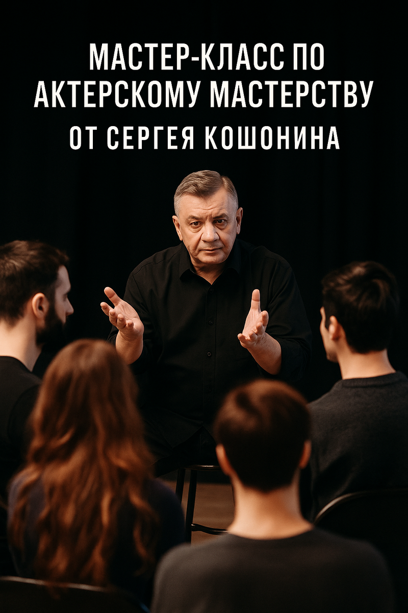 В Центре театра, кино и креативных индустрий прошел второй мастер-класс по актерскому мастерству, спикером которого стал знаменитый советский и российский актер театра и кино, продюсер и заслуженный артист РФ Сергей Кошонин. Он известен своими яркими ролями в фильмах «Жена офицера», «Кроткая», четырех частях «Условного мента», а также более чем в 120 фильмах и телесериалах.