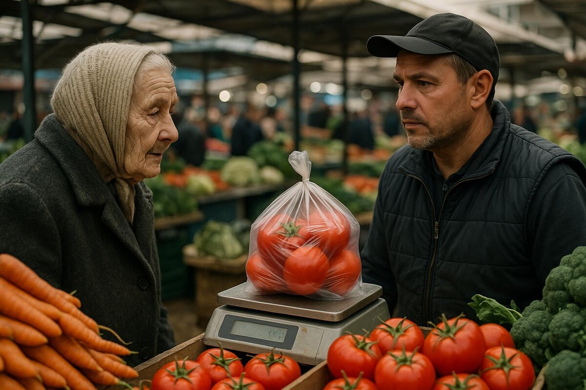 История случилась в самый обыкновенный четверг. Зашел на рынок за картошкой — цены в магазинах кусаются, как голодная собака. Стою в очереди к продавцу овощей, листаю телефон, думаю о своих делах. Передо мной бабушка лет семидесяти, с потрепанной сумкой-тележкой и характерной походкой пенсионера — осторожно, но упорно.