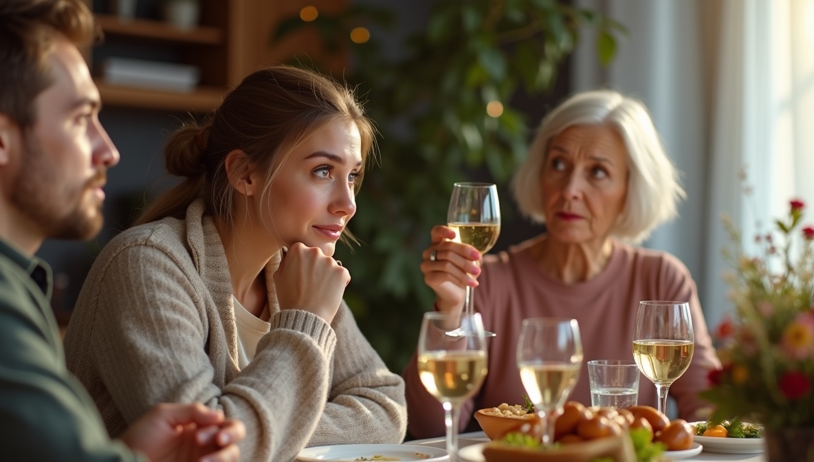 Ну и дела же творились за тем столом! Я сидела с бокалом в руке, смотрела на всех родственников, а сама думала — неужели она это сейчас сказала? Елена Петровна встала, подняла свой бокал и прямо так выпалила: "Хорошо, что Максим не послушался меня и женился на тебе". Все замолчали. А у меня лицо так и запылало — за три года она мне впервые что-то хорошее сказала!