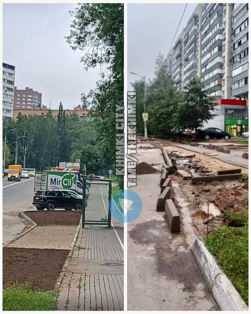 🚍 Перенос остановки «Пенсионный фонд» ⚒️ После сноса торговых павильонов на ул.Панфилова, остановку решено перенести чуть ближе к Юбилейному проспекту, делают её на месте парковочных мест. 💬 Напротив же остановка остается там же, только меняются бордюры и плитка. #Химки