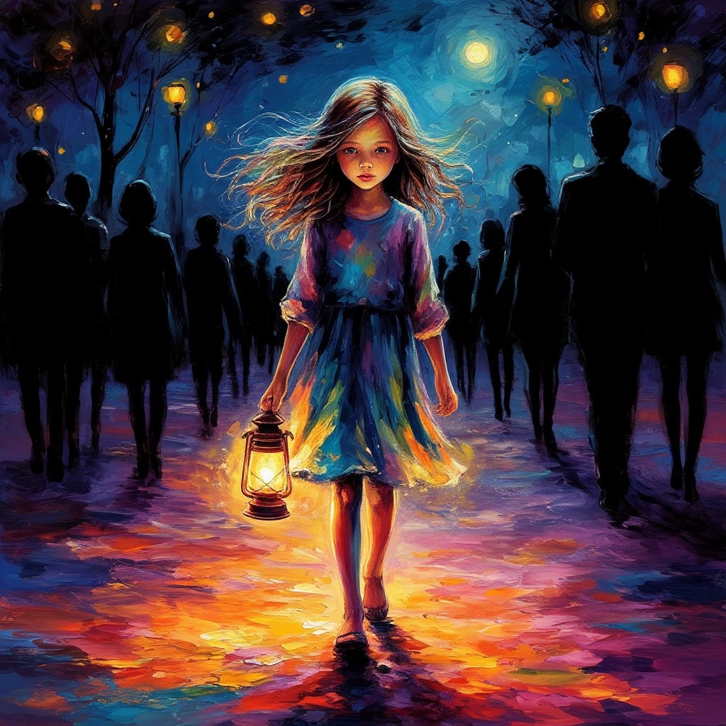 История света, который все забыли В одной деревне, у подножия холма, жила девочка. Она родилась в доме, где никогда не зажигали свет. Свет был. Но лампу накрывали тёмной тканью. Так делали все — с самого детства. Когда она спросила у матери, зачем, та ответила: — Свет слепит. Лучше видеть только то, что нужно. А остальное — не трогай. И девочка привыкла. Она ходила на ощупь. Училась по памяти. Разговаривала тихо. Плакала в темноте. И только иногда ей снились сны — яркие, словно кто-то раз за разом приподнимал ткань над лампой. Однажды в доме погасла ткань. Случайно. Дуновением ветра или чьей-то невидимой рукой. И лампа вспыхнула. Это был нежный, тёплый свет. Он не резал глаза. Он не ломал стены. Он просто показывал всё таким, какое оно есть. Девочка застыла. И впервые увидела: на стенах — трещины, в зеркале — лицо, в себе — живое сердце, в углу — свои рисунки, которые она прятала. И слёзы. Настоящие. Она закричала. Накрыла лампу обратно. Пошла к матери и сказала: — Я увидела всё. Я не