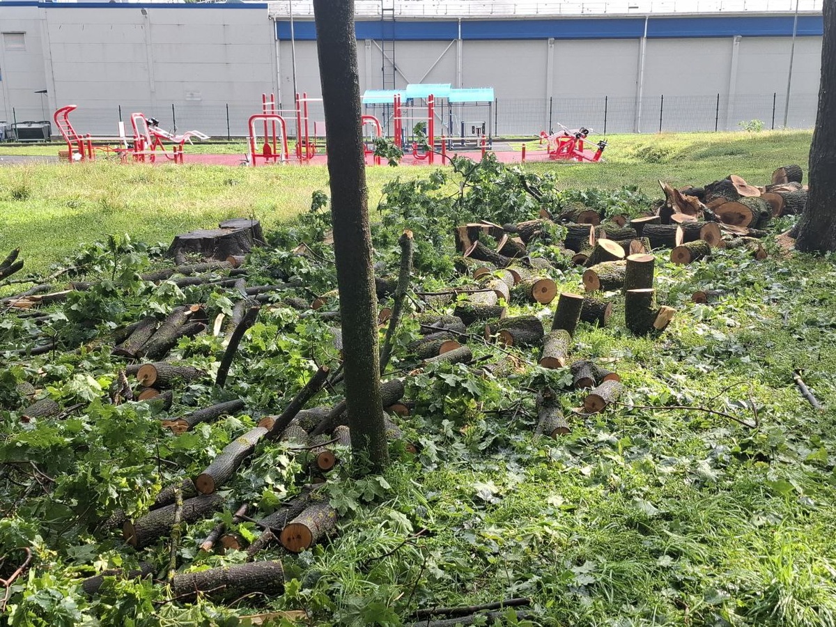 В Туле на детской площадке в Рогожинском парке от непогоды упал большой клен. Корреспондент "Тульской прессы" побывал на месте и посмотрел, что сейчас происходит на месте происшествия. Коммунальщики успели побывать у упавшего дерева: уже распилили ствол на части, а значит, скоро его вывезут с территории парка. Детскую площадку дерево не затронуло, предварительно, никто не пострадал. Напомним, сегодня Тулу накрыла сильная непогода — ливни затапливали улицы, а шквалистый ветер валил деревья. Еще одно рухнуло на улице Тимирязева и повалилось на припаркованные авто.